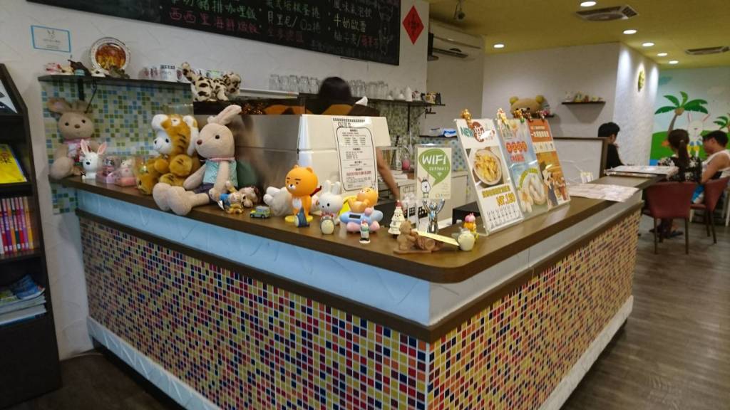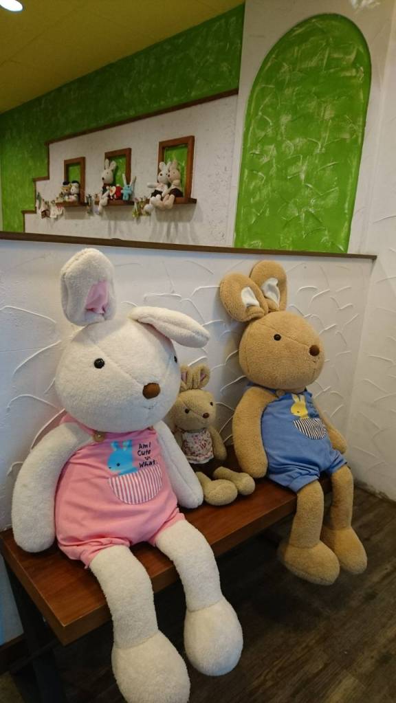 又餓又冷趕快鑽進一家看起來窗明几淨的餐廳,入口處有三隻大兔子玩偶萌噠噠的歡迎你
