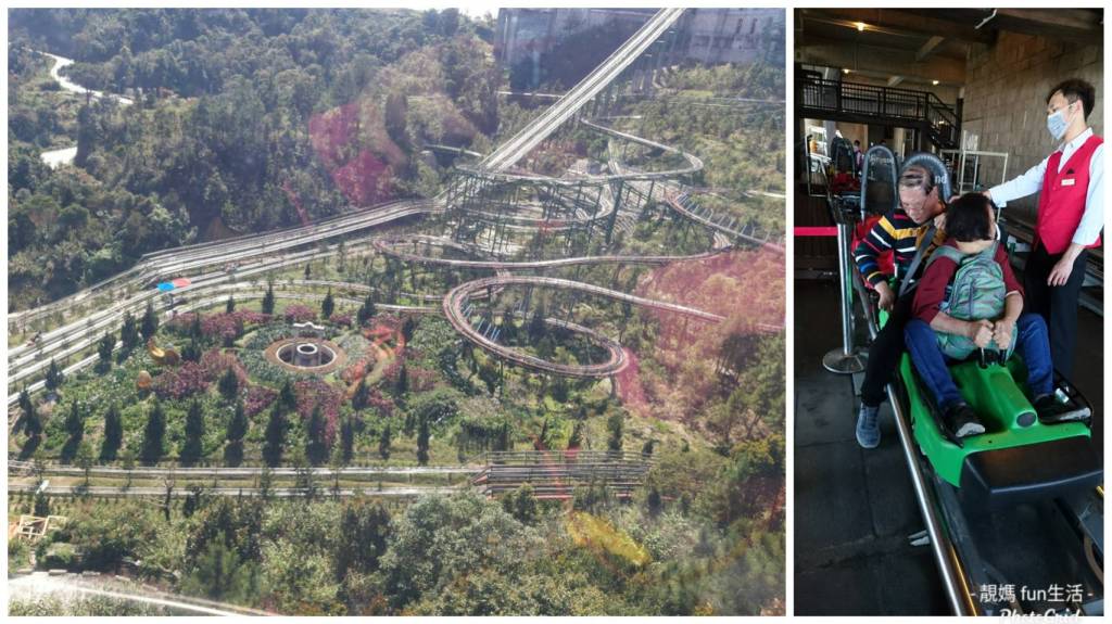 然後體驗最長的戶外斜坡「LUGE 滑車」,這個滑車可以自由控制速度,從半山腰一路滑行下來,沿著650公尺的跑道迅速滑下,全程約5分鐘,不像雲霄飛車般的瘋狂速度,非常舒服,讓靚媽想一玩再玩,可惜長長的排隊人龍只好作罷。