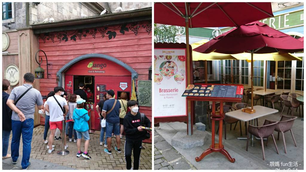 累了可以坐下來喝杯咖啡的小餐廳及排長龍的芒果冰淇淋
