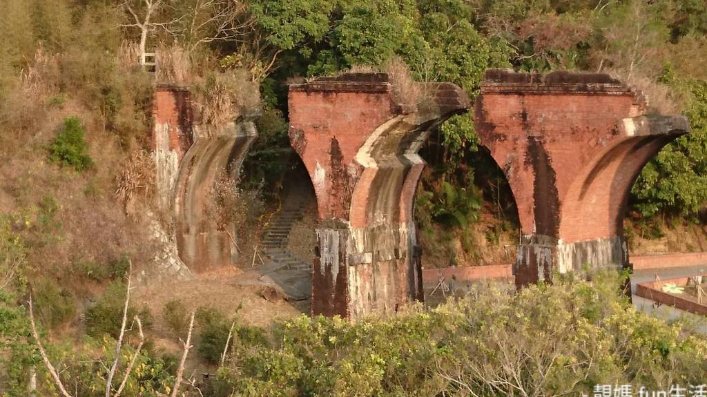 這個就是剛剛經過的魚藤坪鐵橋,騰騰斷橋崩塌後興建的,據說是台鐵山線最高的鐵橋,原來在停駛改道前,靚媽回南部外婆家都要經過此地,只是時間久遠已不付記憶