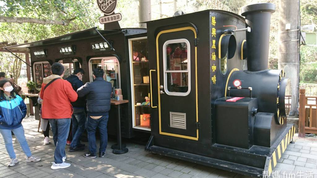 連咖啡小站都是仿照以前的老式燒柴火車頭 , 別有一番風情