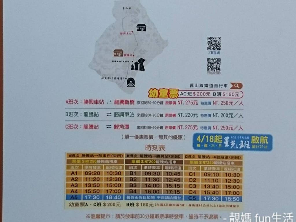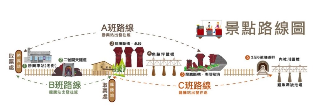 每條線每天都有五個車次,為了避免到達時車票已完售,建議可以先上網訂票,再到車站櫃台換票即可,這次我們想逛逛勝興老街,所以選擇從勝興車站出發的A路線。