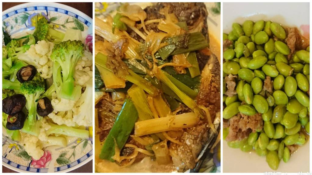 晚餐:紅燒台灣鯛、毛豆炒肉末、青菜