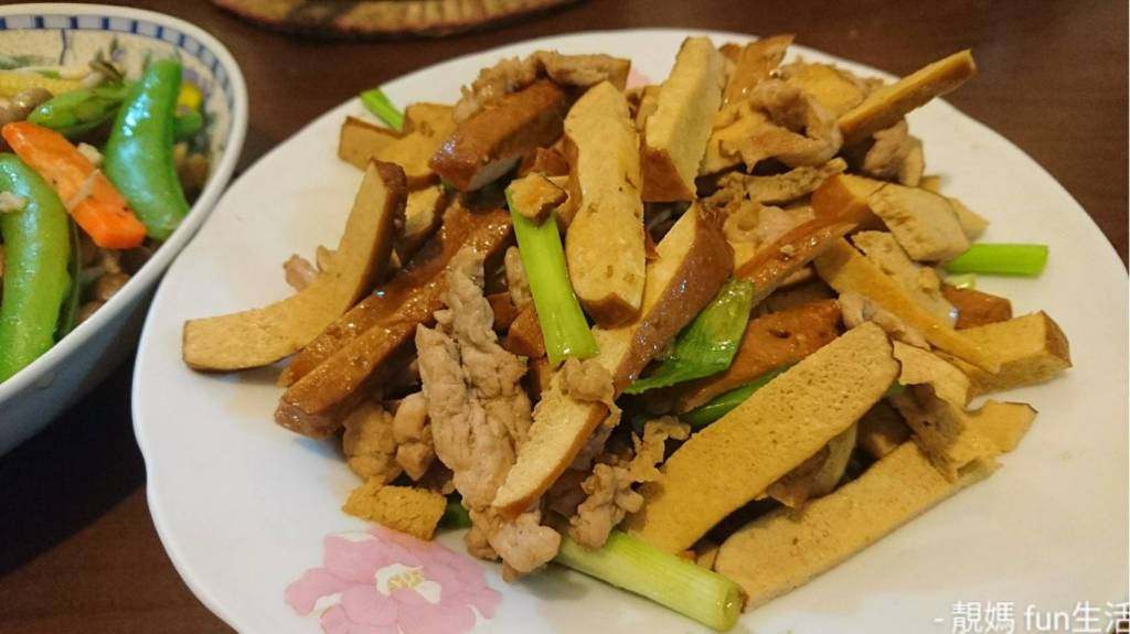 晚餐:豆干肉絲青蔥、奶油香菇青豆、紅黃雙椒肉片